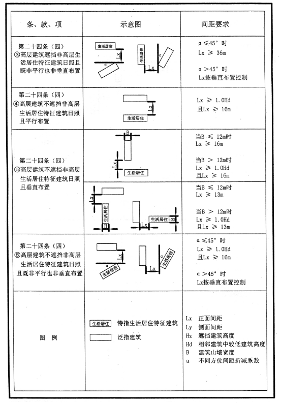 生活居住特征建筑间距应满足上述要求,并符合下列规定: