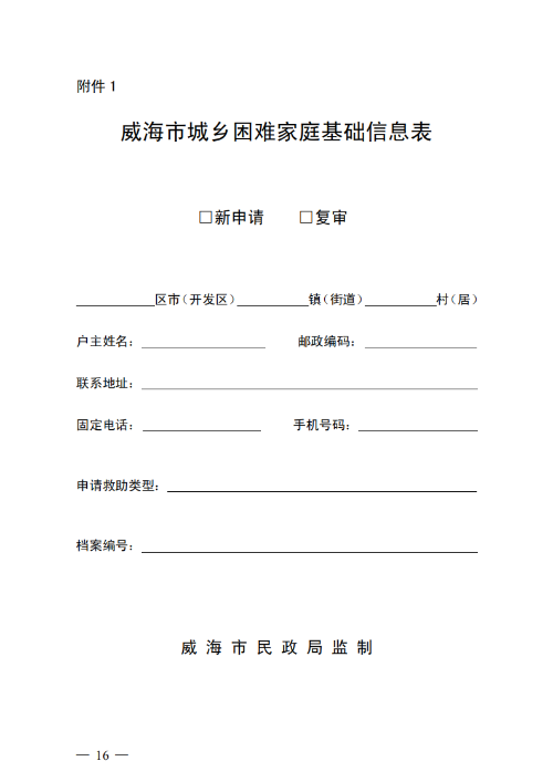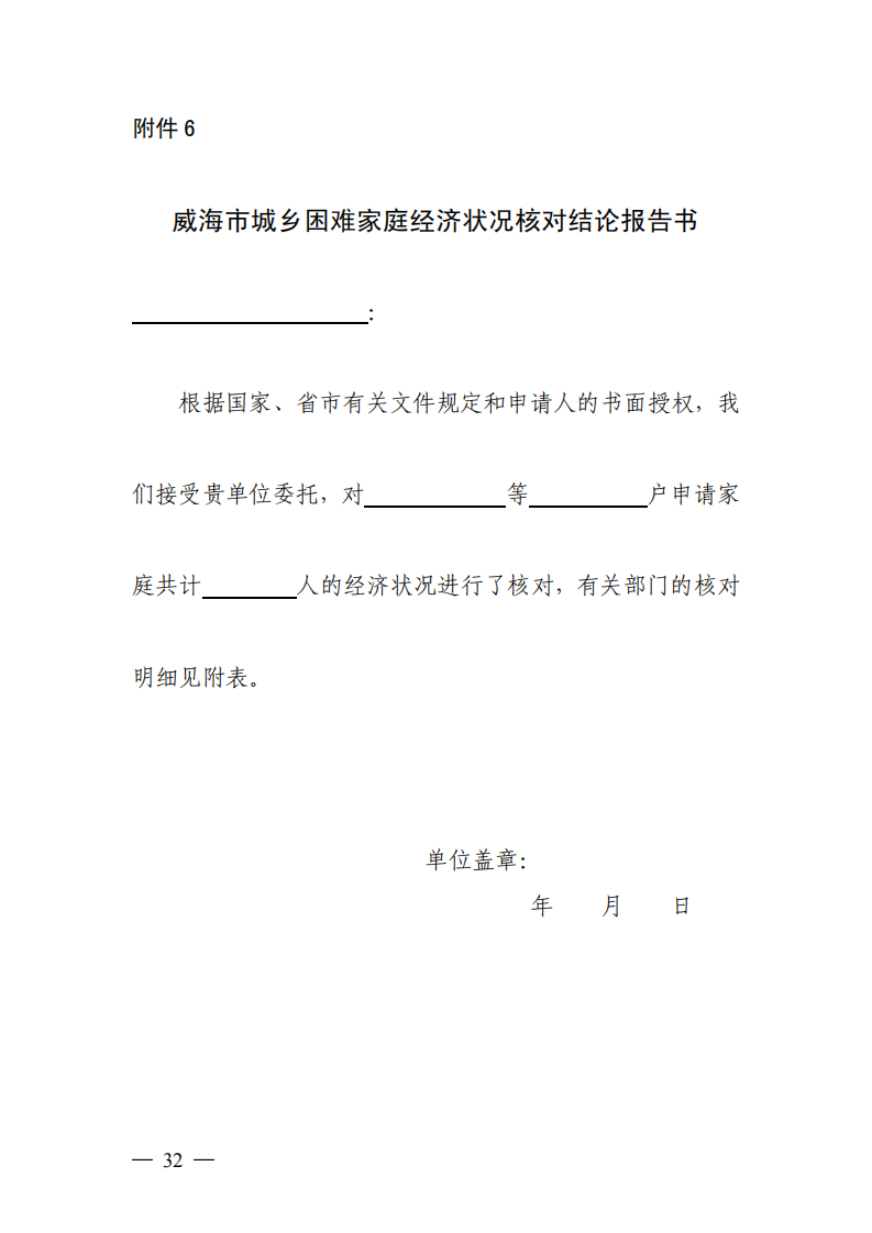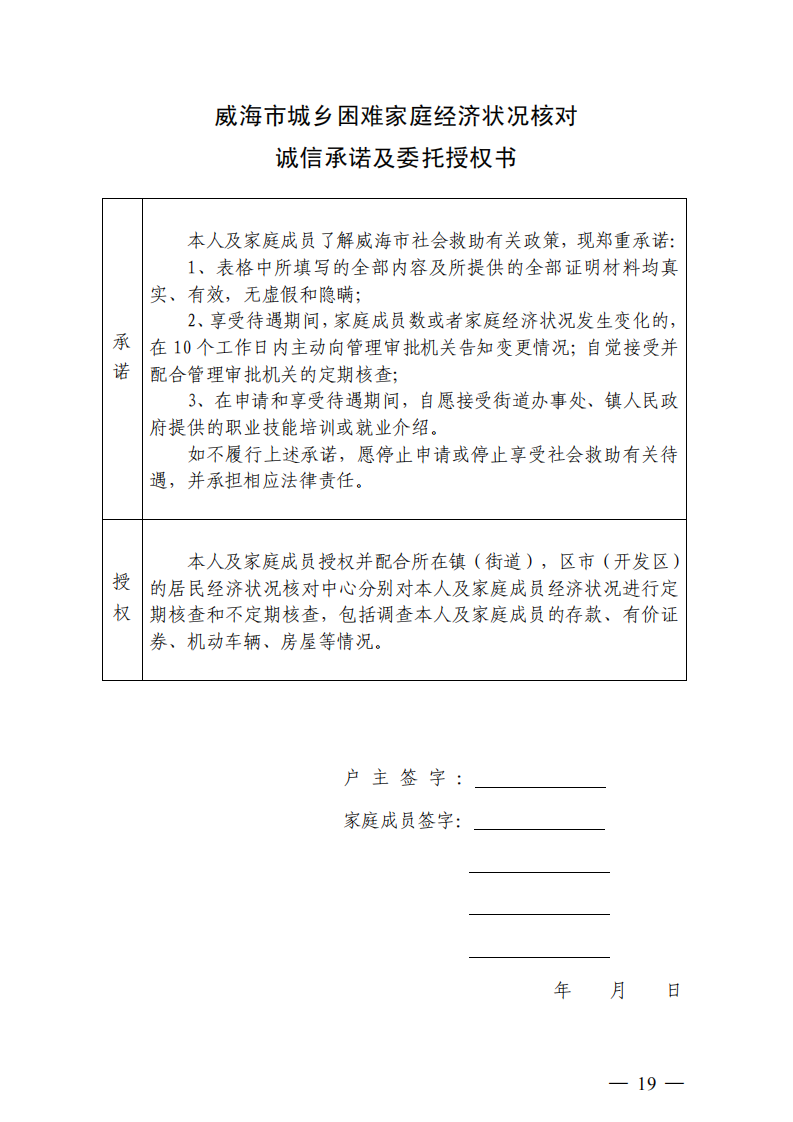 关于印发《威海市居民家庭经济状况信息核对操作规程》的通知