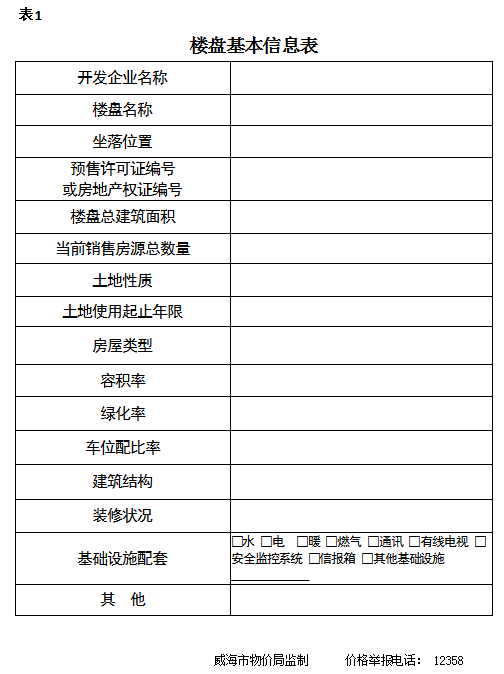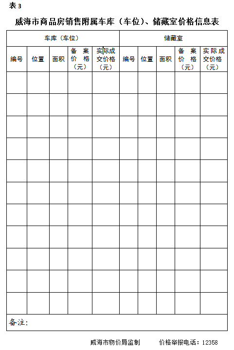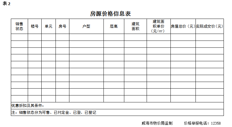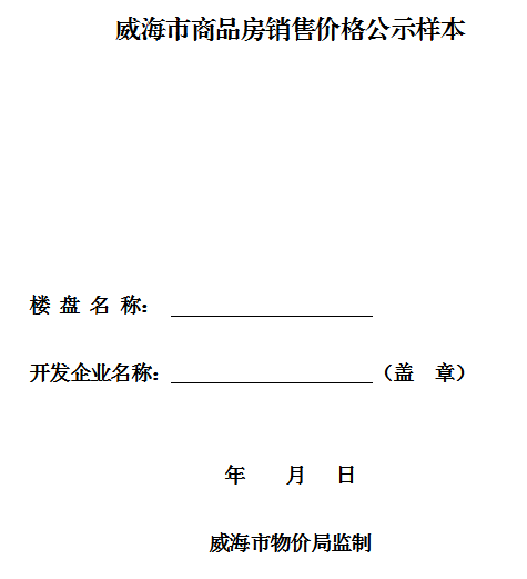 威海市商品房销售价格公示样本
