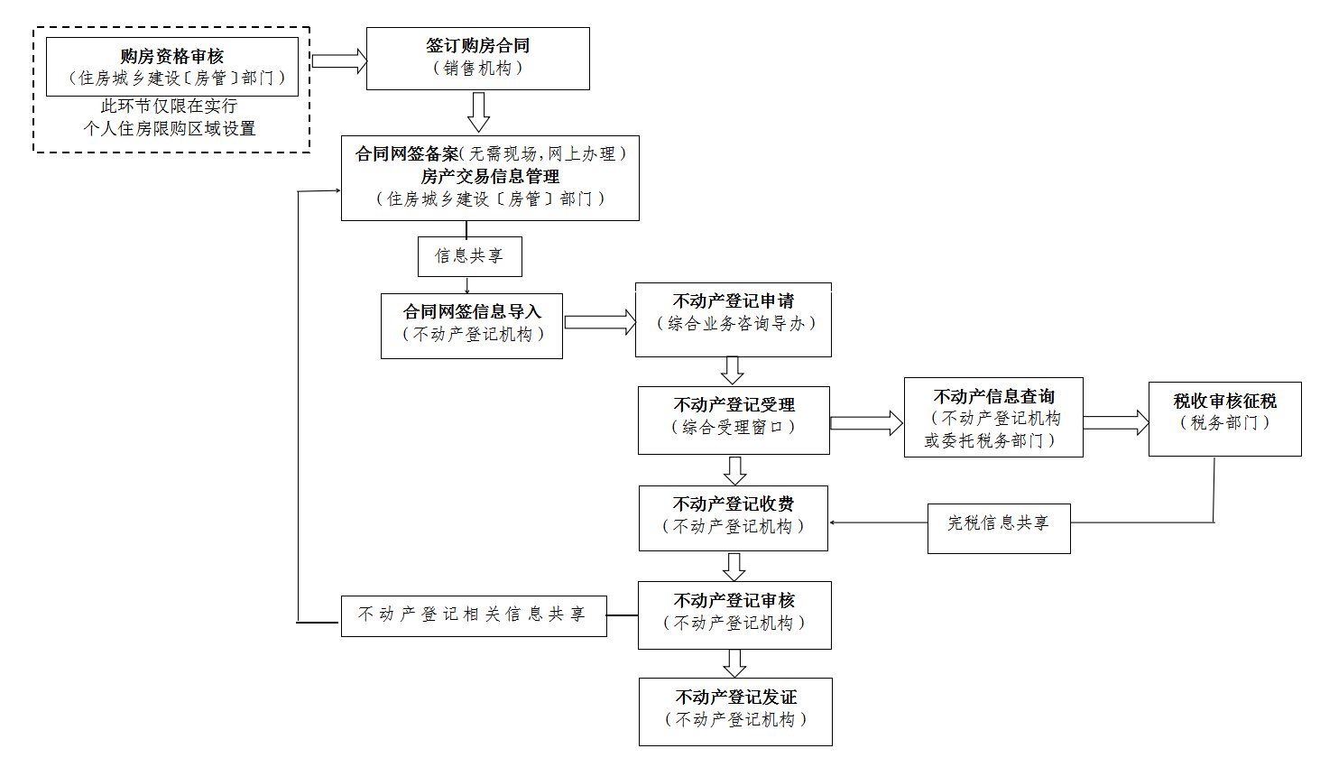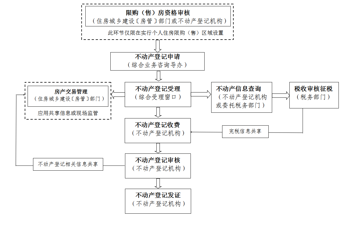 (三)简化优化流程,并行“一窗联办”。国土资源、住房城乡建设(房管)、税务等部门要进一步优化业务流程,在不动产登记综合受理窗口收件后,同时推进各自业务办理。除法律法规有明确规定外,不得设置前置审批事项。国土资源部门要加快存量不动产数据整合进度,进一步减少权籍调查用时。落实登记流程标准化要求,实行审核岗位负责制,对房屋转移、抵押等大部分一般登记业务由“二审登簿”改为“一审登簿”。住房城乡建设(房管)部门要依法做好房产交易监管工作,完善交易监管信息系统。在实施限购等房地产调控政策时可设置购房资格审核环节。税务部门依据不动产登记综合受理窗口收取的材料和部门共享的信息核征税款,要认真做好房地产价格评估系统定时更新,及时堵塞不动产交易“阴阳合同”等漏洞。国土资源、住房城乡建设(房管)部门不得要求申请人自行调取已有的宗地图、房屋平面图等测绘图纸,严禁利用已有的测绘调查成果收取费用。推行网上支付税款和登记费等费用,进一步方便企业和群众。