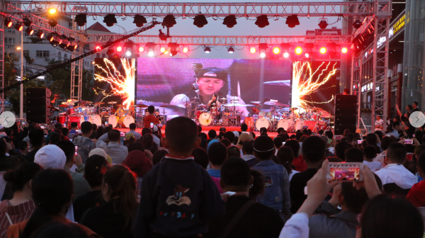 晚上,神秘嘉宾加拿大著名架子鼓演奏家瑞安·史蒂文森的出场,将社区文化节推向了高潮。在大家的尖叫声中,瑞安·史蒂文森连续演奏了《向前冲》、《逆战》、《吸引》等曲目,赢得现场小鼓手和市民们阵阵掌声。瑞安·史蒂文森现场邀请社区小鼓手们一起合奏,为广大市民们献上了一道激情澎湃的打击乐视听盛宴,让现场观众在家门口欣赏到国际水准的音乐盛会。