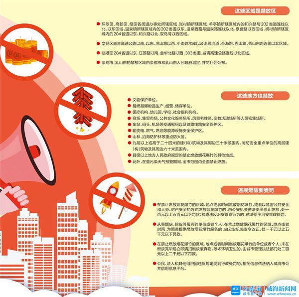 今年1月1日起,乳山市人民政府发布的《关于禁止燃放烟花爆竹的通告》正式施行。规定,乳山市区西外环路以东,北外环路以南,长庆路、珠海路至威青高速交接处以西,开发街、日照路以北区域为禁止燃放烟花爆竹区域。该区域属于城市建成区,是人员密集区和烟花爆竹集中燃放区,以城市建成区为基础,以道路为主要边界划定禁放区的条件相对成熟,实践中可操作性比较强,市民支持率高。