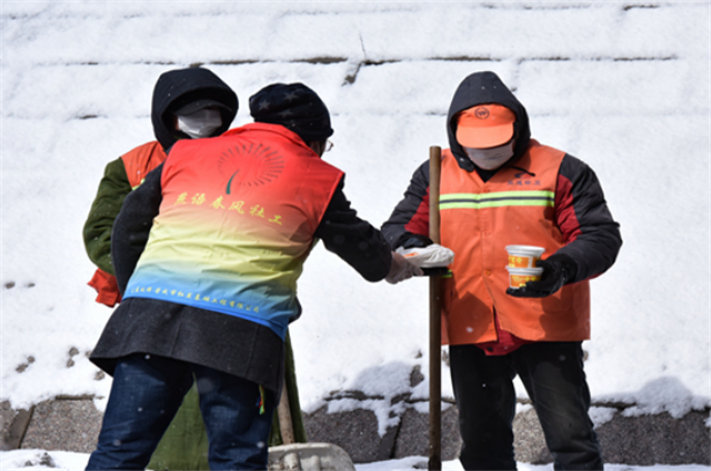 在这场战“疫”中,长城爱心大本营为困难残疾人送粮、送菜、送消毒液等生活和防疫必需物资同时,不忘那些奋战在抗“疫”一线的新闻记者和在各社区防疫卡点,不顾严寒风雪执勤的志愿者,先后为他们送去7000余副保暖手套和2000余只口罩。