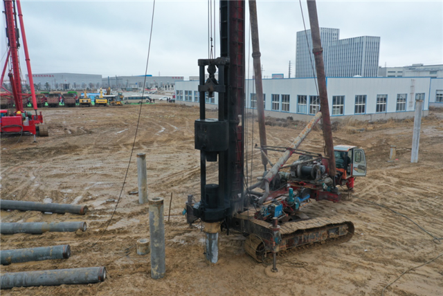 2月28日,是南海新区恒嘉辉半导体产业园项目开工的日子,数十辆工程车满载着管桩材料依次入场,数十台打桩机分布在工地各处,同时作业,发出巨大轰鸣声响。