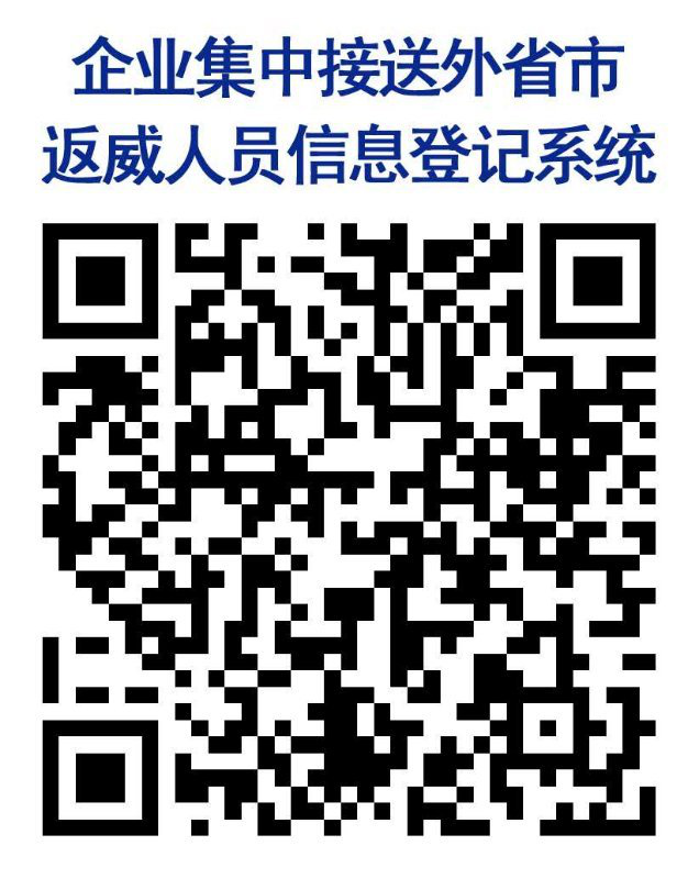 (一)由属地人社部门牵头组织用工企业梳理需接返务工人员个人信息,通过“企业返威人员乘车需求登记系统”二维码(见附件1)录入所属需集中接返务工人员信息。用工企业在录入信息前,要全面、准确掌握务工人员健康状况,要求所属务工人员及时办理其属地的健康通行码(绿码)。因特殊情况无法获得健康通行码(绿码)的务工人员,需在当地出具健康证明文件。未办理健康通行码(绿码)或健康证明文件的人员,不得录入系统。用工企业在填写需接返务工人员信息时,要一并注明企业联系人和联系电话。