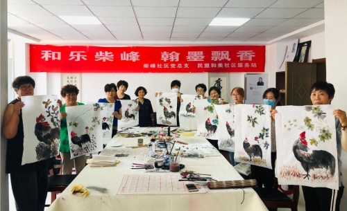 国画课堂复课后,田村社区、金峰塔社区、宏泰社区的“学生们”陆陆续续来到社区活动室,盛水、泡笔、裁纸,大家边动手边讨论画作技巧,国画课的老师们分别教大家学习作画荷花、牵牛花、樱桃、牡丹……在老师的专业指导下,大家根据教学步骤开始作画,经过几个小时的创作,一幅幅色彩鲜明、风格多样的作品很快呈现在大家面前。