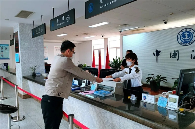 在做好前期准备后,海事局工作人员提升工作效率,第一时间受理审核海润公司办证申请,按照“全国通办”要求快速完成审核流程,仅用一天时间就将证书发放至海润公司相关负责人的手里,解了公司的燃眉之急。