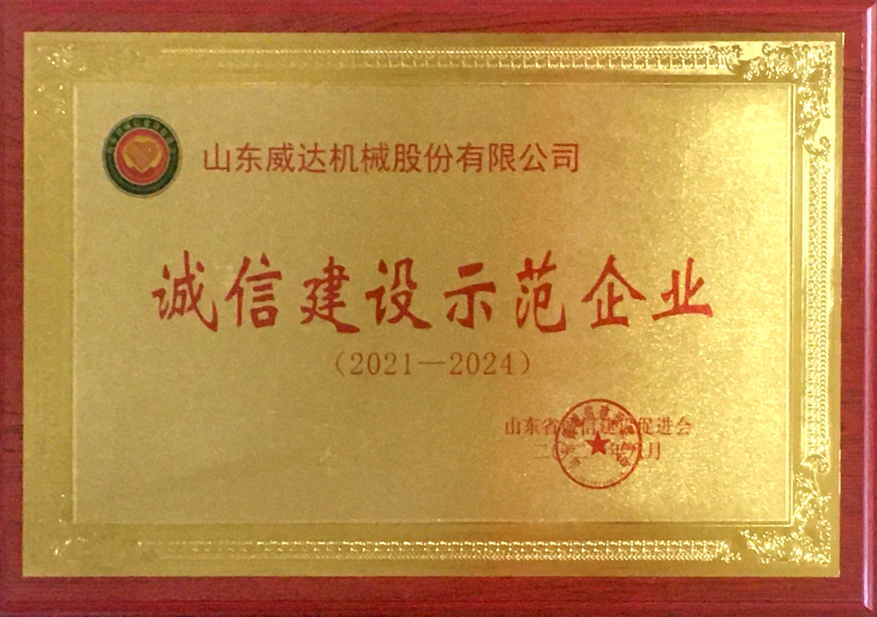 近日,山东省诚信建设促进会公布了2021年度山东省“诚信建设示范企业”名单,我区威达机械股份有限公司上榜。10月19日,省成促会于威海组织召开表彰会,为省诚信建设示范企业颁发牌匾。