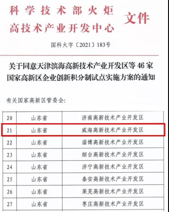 近日,科技部火炬中心发布了《关于同意天津滨海高新技术产业开发区等46家国家高新区企业创新积分制试点实施方案的通知》,我区成功获批,位列此次获批的省内8家国家高新区第2位。