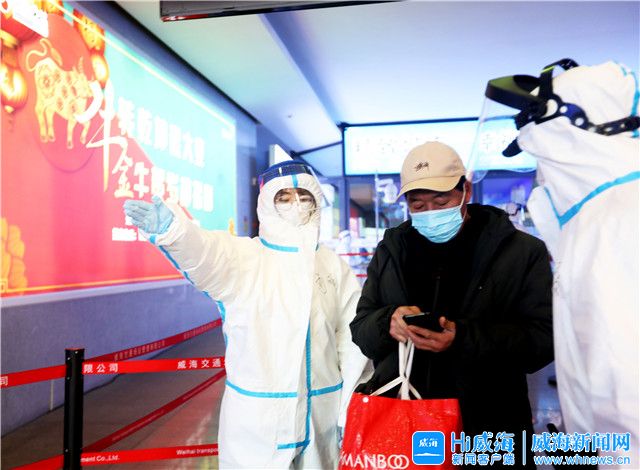 2月13日上午7点,90后刘明明开始了一天的忙碌。她利索地穿好防护服、鞋套,戴好防护面罩,随后来到威海高铁站出站口,指引旅客有序出站。
