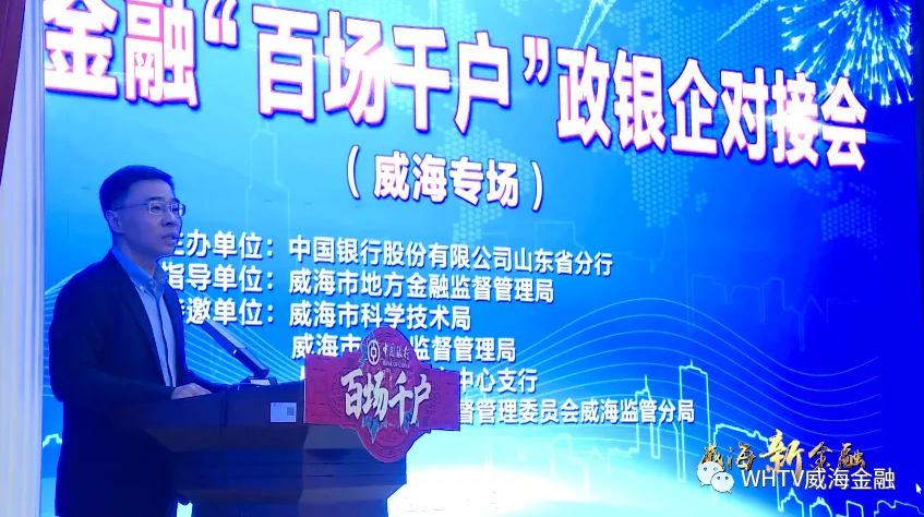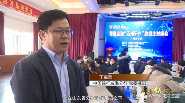 中国银行威海分行举办这次“百场千户”的活动,是在山东省分行指导带领之下,我们牛年举办的第一场活动。一是我们邀请了省行的审批人,信贷资源到我们威海来,集中的与我们的企业家朋友面对面的交流,那么这种交流最大的好处是可以把我们企业最真实的诉求,最真实的情况,第一时间挖掘出。与此同时,我们企业家朋友也可以把心中的疑惑,以及在金融方面有哪些的这种问题,也可以第一时间提出来,我们会面对面零距离的交流和解答,以方便我们下一步的合作方案的达成。第二个来讲的话,这次我们邀请了我们政府的部门以及人民银行、银保监局等相关的监管部门,对我们现场来指导。也是通过这种方式,搭建一个政、银、企三方的互信、互利、互惠、共赢的一个平台,那么通过这种平台,我们把我们的普惠金融事业,争取通过一个点一个场的活动,然后,作为一个源头,也作为发展的一个起点,把我们中国银行威海分行普惠金融与服务当地的实体经济有机地结合起来,最终把我们中国银行践行金融报国,服务实体经济的经营理念贯彻下去。最终,也是普惠我们千万中小客户,也是实现我们银企的合作共赢。