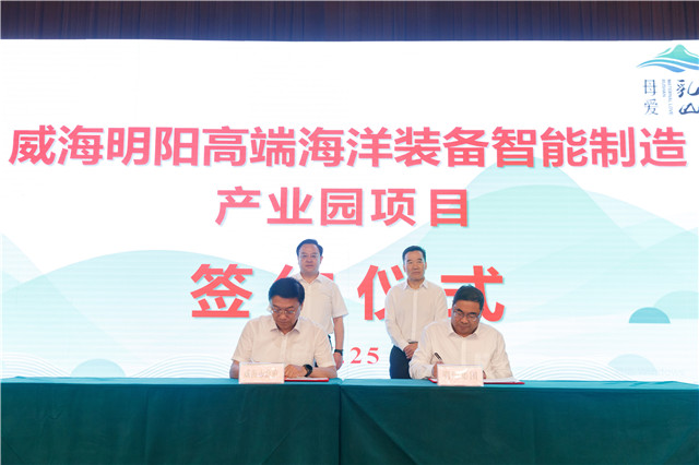 签约仪式上,威海市人民政府与明阳集团签订海洋经济高质量融合发展示范区项目战略合作协议,在乳山建设高端海洋装备智能制造产业园和新型海上资源立体化开发试验场。乳山市与大金重工股份有限公司签订海上风电重型装备项目投资合作框架协议,规划分三期建设风电塔筒、风电管桩、风电导管架制造项目。(Hi威海客户端通讯员 施福/文 辛戈/图)