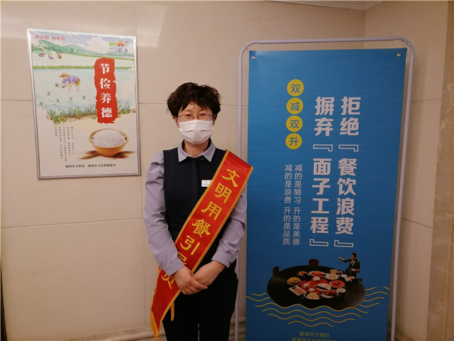 “我们的菜品分量足,3个人点两菜一汤就可以了,秋季新品反响不错,如果还想品尝其他的菜品,建议先吃完再点,避免浪费。”9月22日,在抱海大酒店望海潮威海菜馆里,一名“文明用餐引导员”正在为一桌客人点餐“支招”,推荐当季创新菜品。