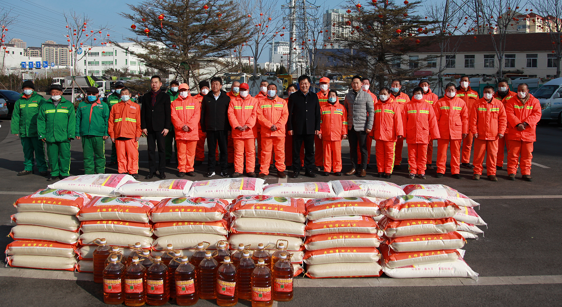 近日,区党工委委员、建设局局长于维锋带队到联华市政公司,看望慰问一线环卫工人,送去米、面、油等慰问品,向大家致以新春的祝福。