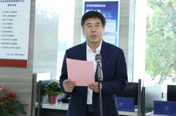 10月17日上午,高新区管委与工商银行威海分行深化“政银合作”启动仪式举行。区党工委委员、管委会副主任孙法春,工商银行威海分行行长张鹏出席活动并为企业全链条政银服务专区揭牌。