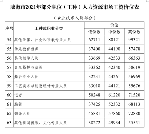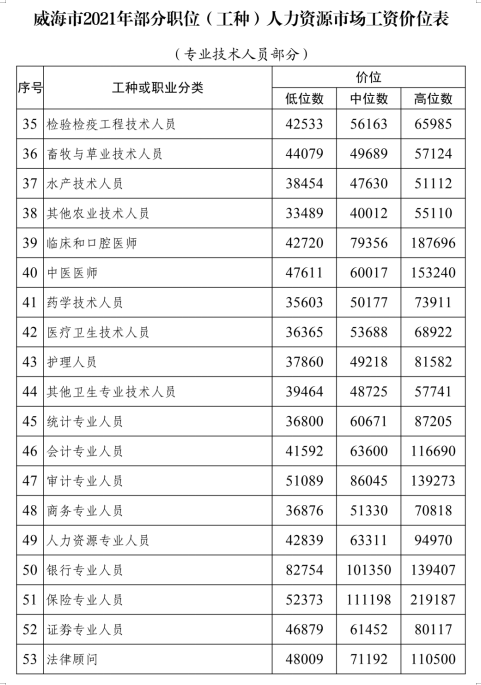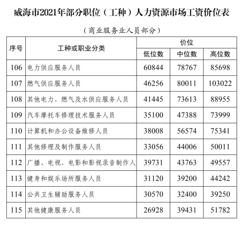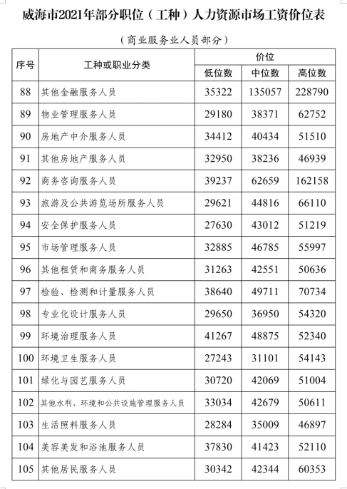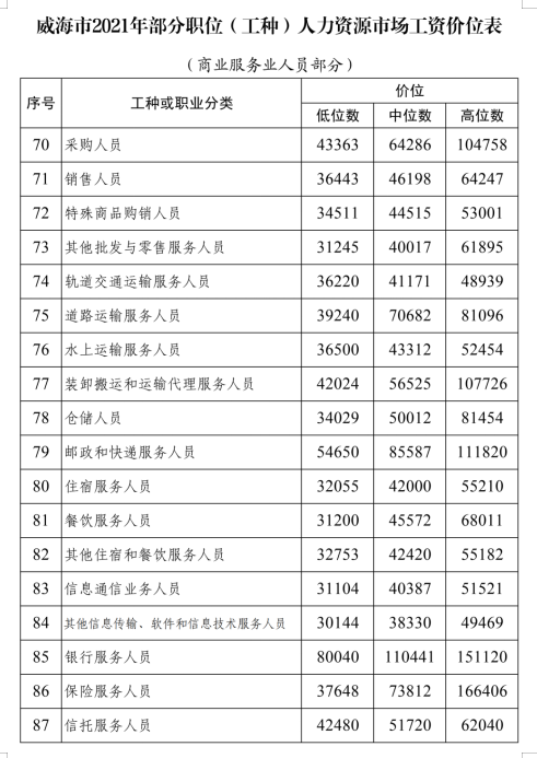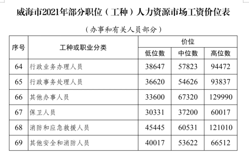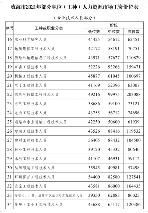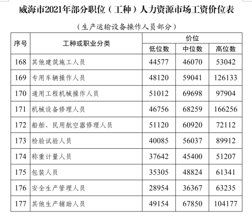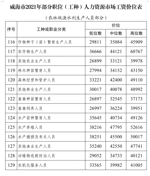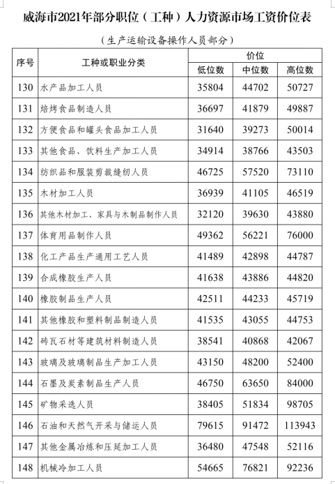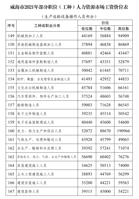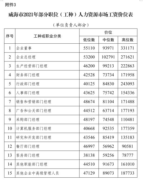 3.威海市2021年部分职位(工种)人力资源市场工资价位表