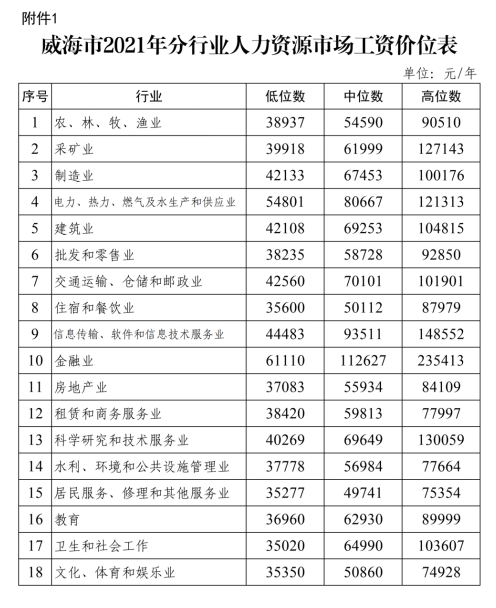 附件:1.威海市2021年分行业人力资源市场工资价位表