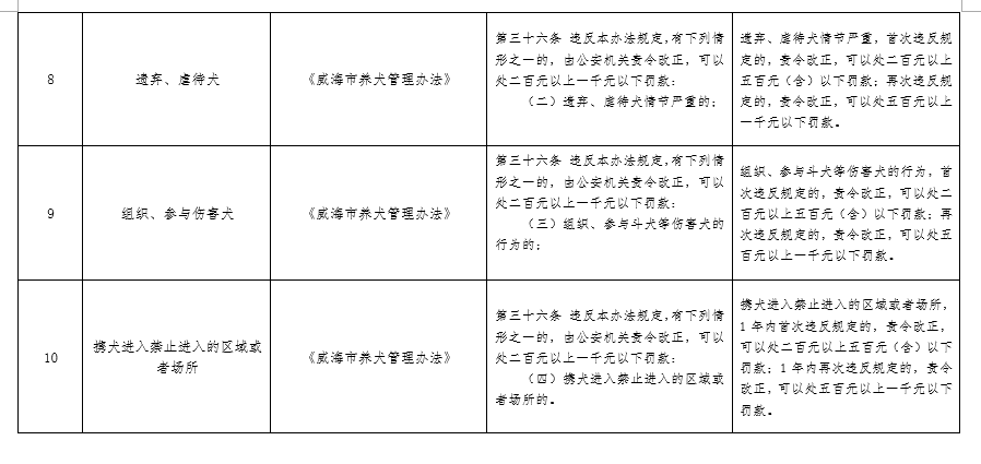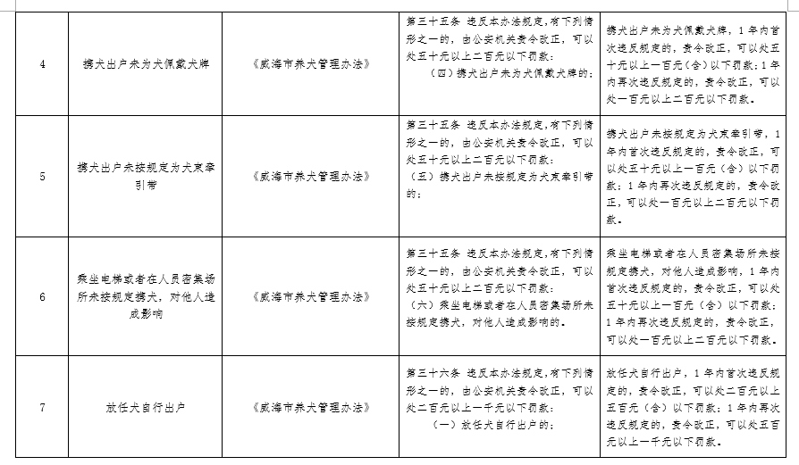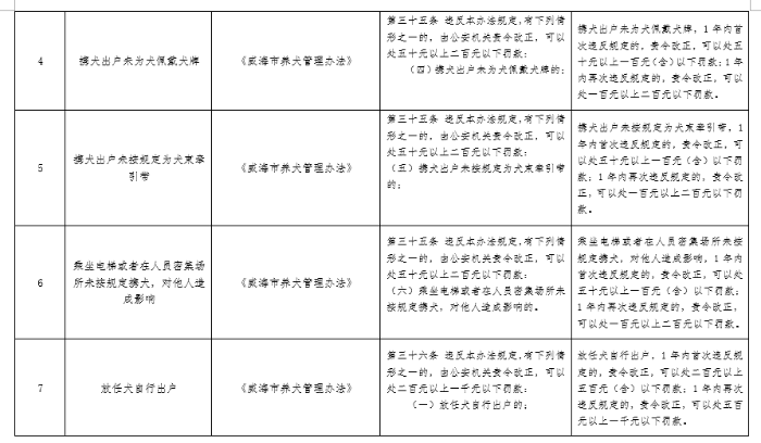 为进一步规范烟花爆竹禁止燃放和养犬管理工作,根据《山东省规范行政处罚裁量权办法》和《威海市行政规范性文件管理办法》,市公安局对《威海市禁止燃放烟花爆竹办法》和《威海市养犬管理办法》相关行政处罚事项进行了细化、量化,制定了《威海市公安局禁止燃放烟花爆竹和养犬管理行政处罚裁量基准清单》,现印发你们,请遵照执行。