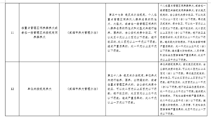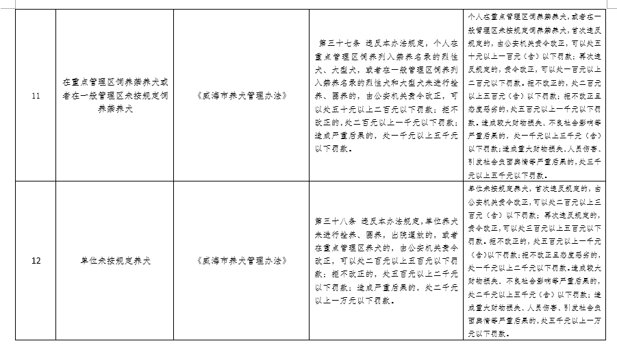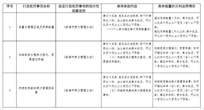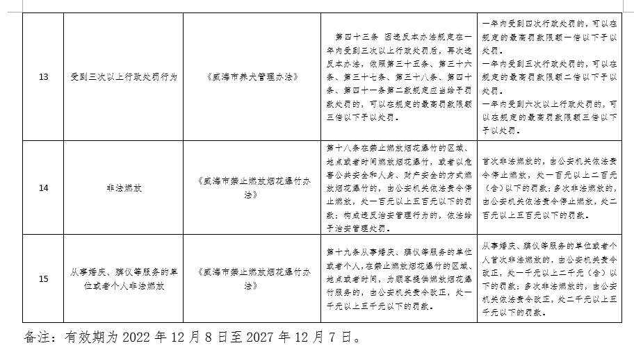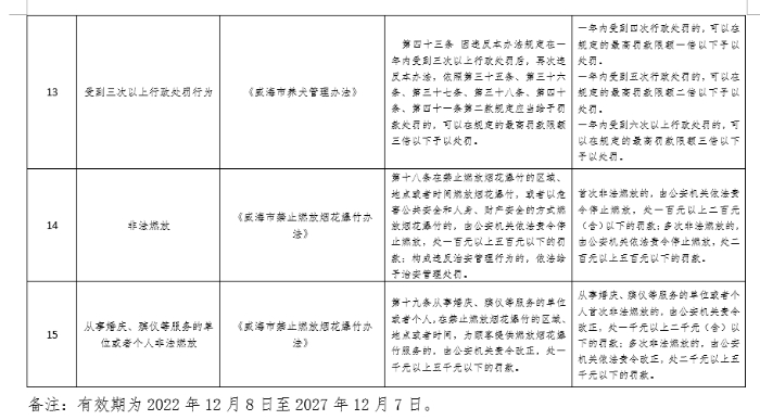 威海市公安局禁止燃放烟花爆竹和养犬管理行政处罚裁量基准清单