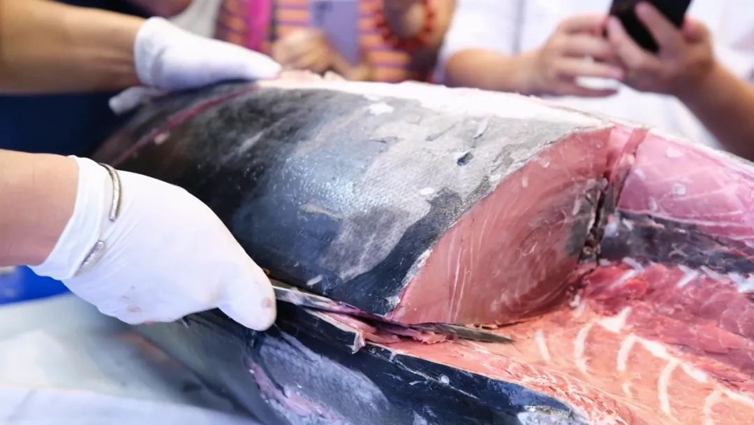 11月下旬,2022年中国国际海洋产业博览会在海口开幕。一条从印度洋自捕的金枪鱼,从荣成石岛港上岸后直抵海口,在展会上惊艳亮相。