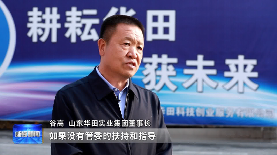 山东华田实业集团董事长谷高:“如果没有管委的扶持和指导,不可能像现在这样房子百分百的租出去。今年,我们又荣获了国家级的孵化器,有两家企业已经达到了上市条件。”
