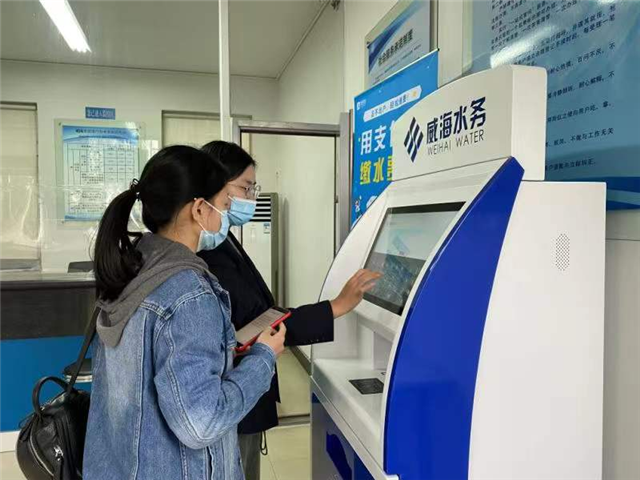 在临港区苘山镇,环翠区温泉镇、羊亭镇和孙家疃街道等处的供水窗口服务单位增设了8台自助终端机,居民和企业用户可以自助办理水费查缴、更名过户等多项业务办理。