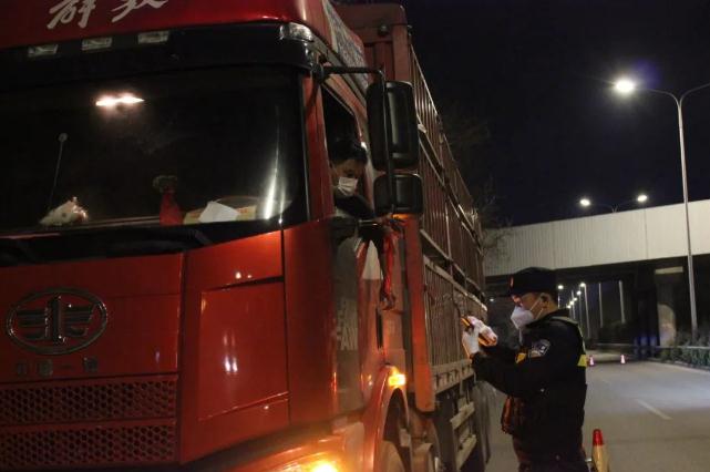 3月21日晚上7时许,记者来到汪疃镇卡口,寒风中警灯闪烁,身着“夜光警服”的值班民警、辅警,对每一辆经过的车辆进行疫情防控检查。“汪疃镇卡口来往车辆比较密集,夜间会有一些运送医疗物资和货物的大型车辆,我们要检查每一辆车辆的出入通行证和司机的48小时内核酸检测结果,符合条件的可以放行。”吴兴说。