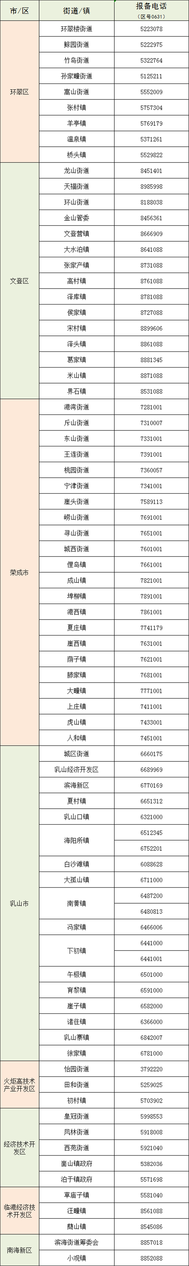 各街道/镇报备电话