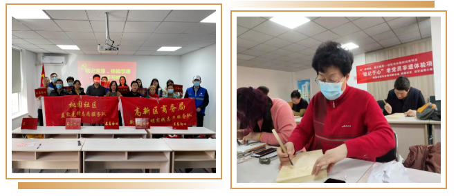 在桃园社区,邀请非物质文化遗产保护项目传承人广平老师为社区内老党员开展雕刻“不忘初心”木雕画讲解,让老人们感受到了更多的社会关爱和温暖。
