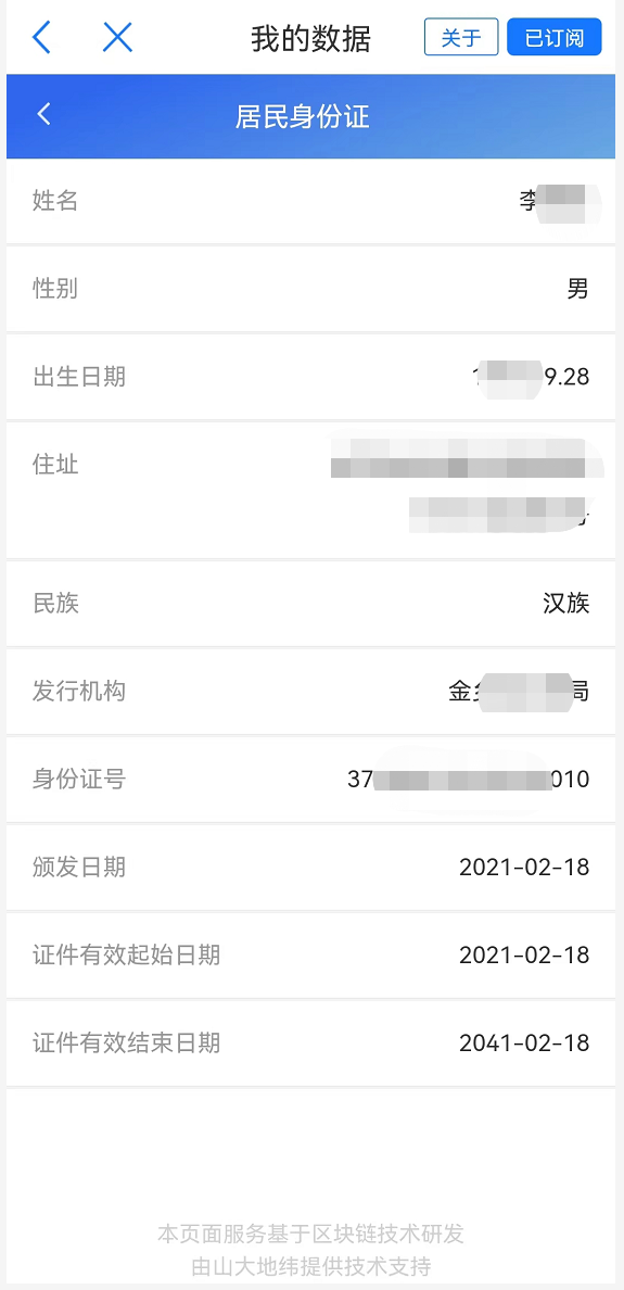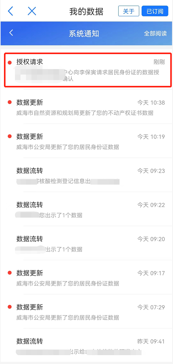 近日,市大数据中心基于区块链技术建设的“我的数据”栏目在“爱山东”APP威海分厅正式上线,栏目收录个人、企业的政务数据,结合自主录入完善数据,形成数据档案,支持群众查看,自主授权使用。截至目前,“我的数据”栏目已汇集来自公安、人社、医保等33个部门的个人数据集93个、企业数据集77个,群众可领取、查看、完善、使用其社保、医疗、征信、家庭、房产等各类数据。下一步,将不断扩大数据档案内容,持续开发应用场景,真正做到公共数据“取数于民、还数于民、自主使用”。