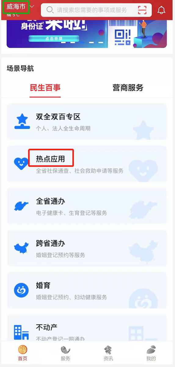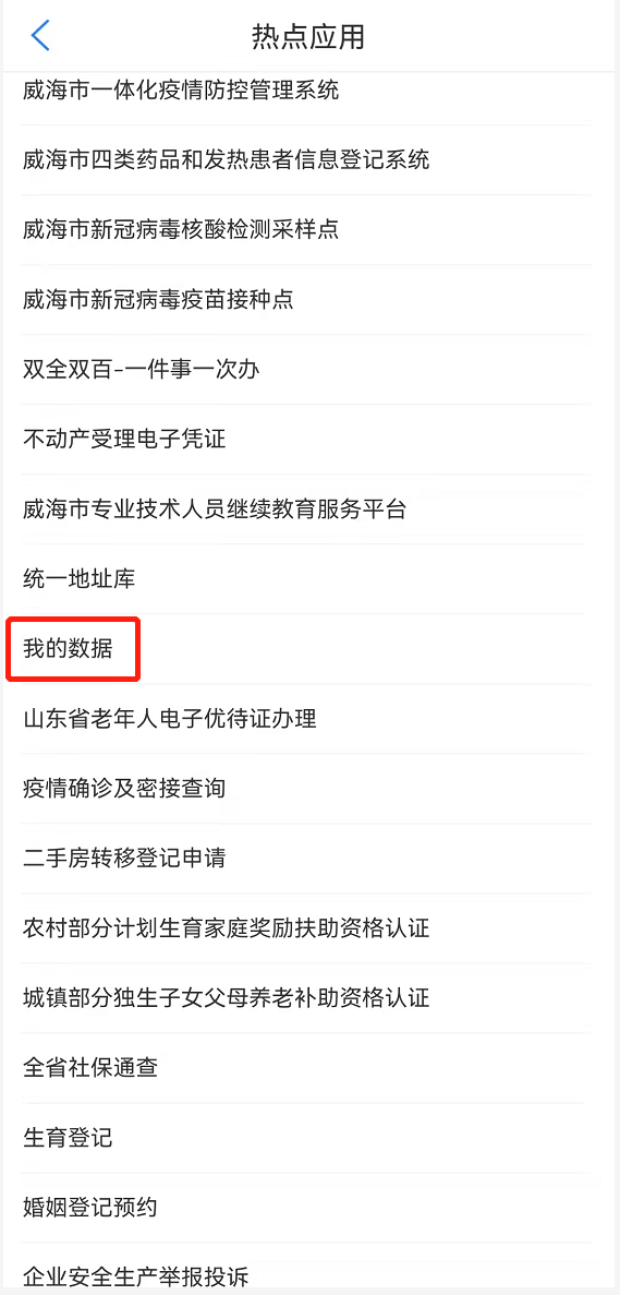 入口2:在“民生百事-热点应用”中选择“我的数据”