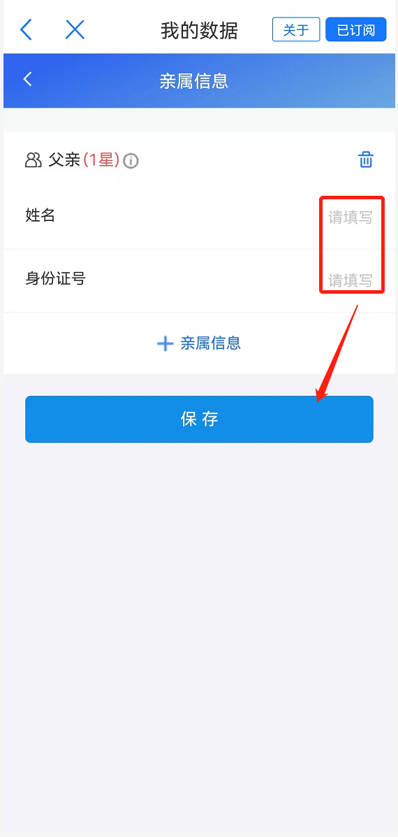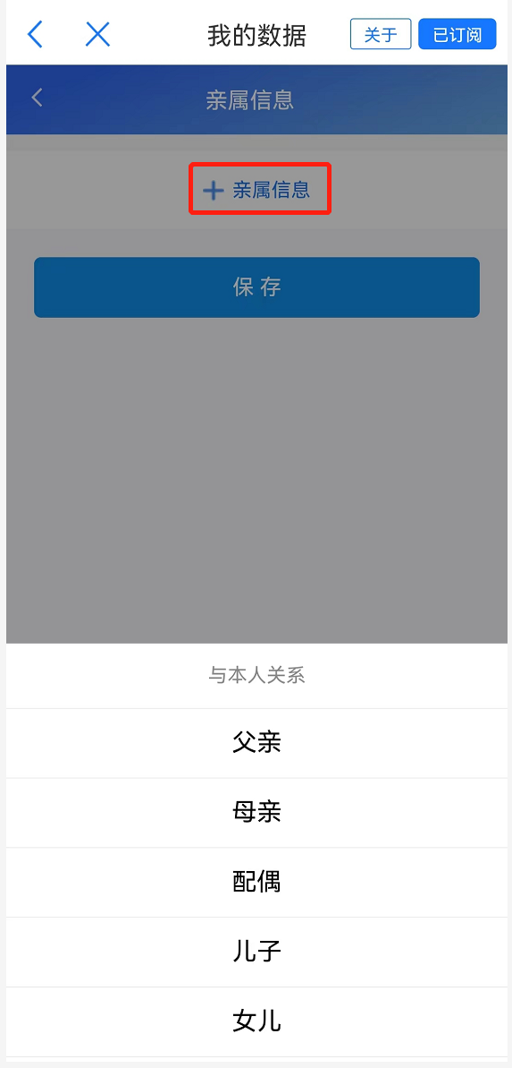 首页还展示了不同类型的数据分组,如亲属信息、教育经历信息等。同样地,可以对各类信息进行补充完善。