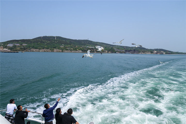 5月18日,游客乘船游览威海湾。新华社记者 朱峥 摄