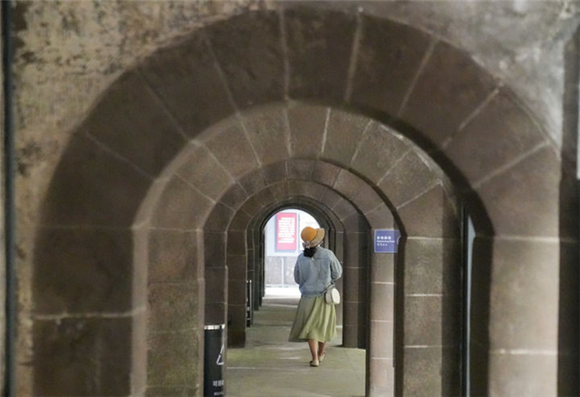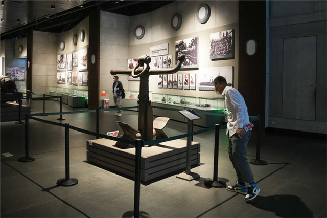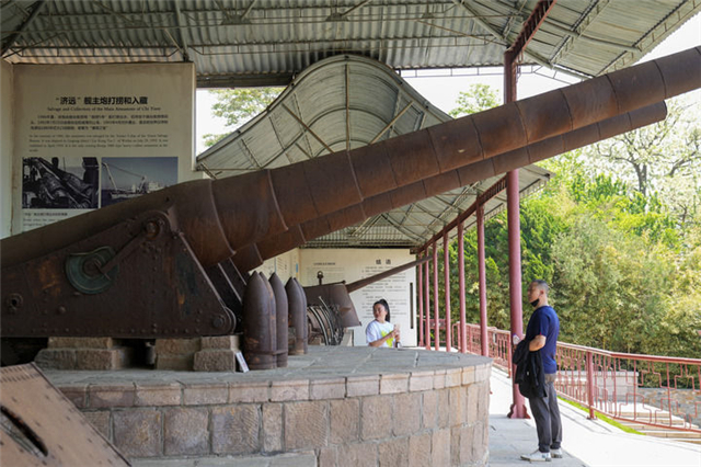 5月18日,游客在威海刘公岛景区内参观中国甲午战争博物院。新华社记者 朱峥 摄