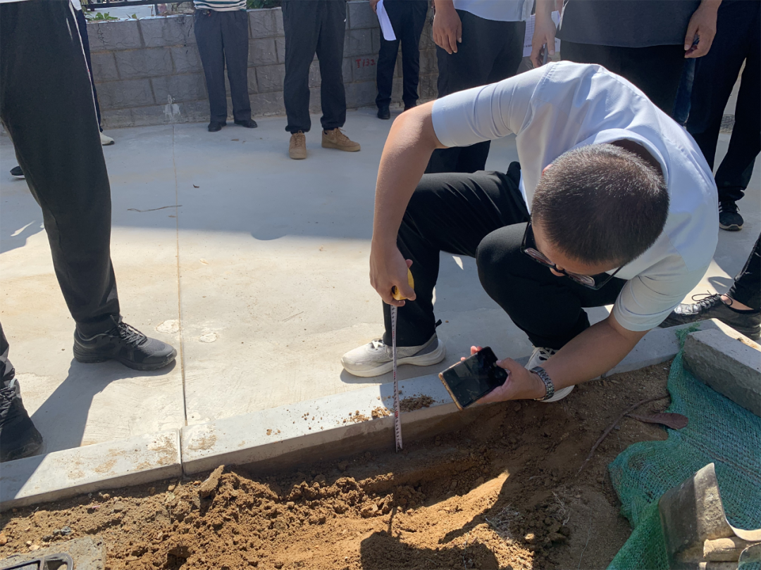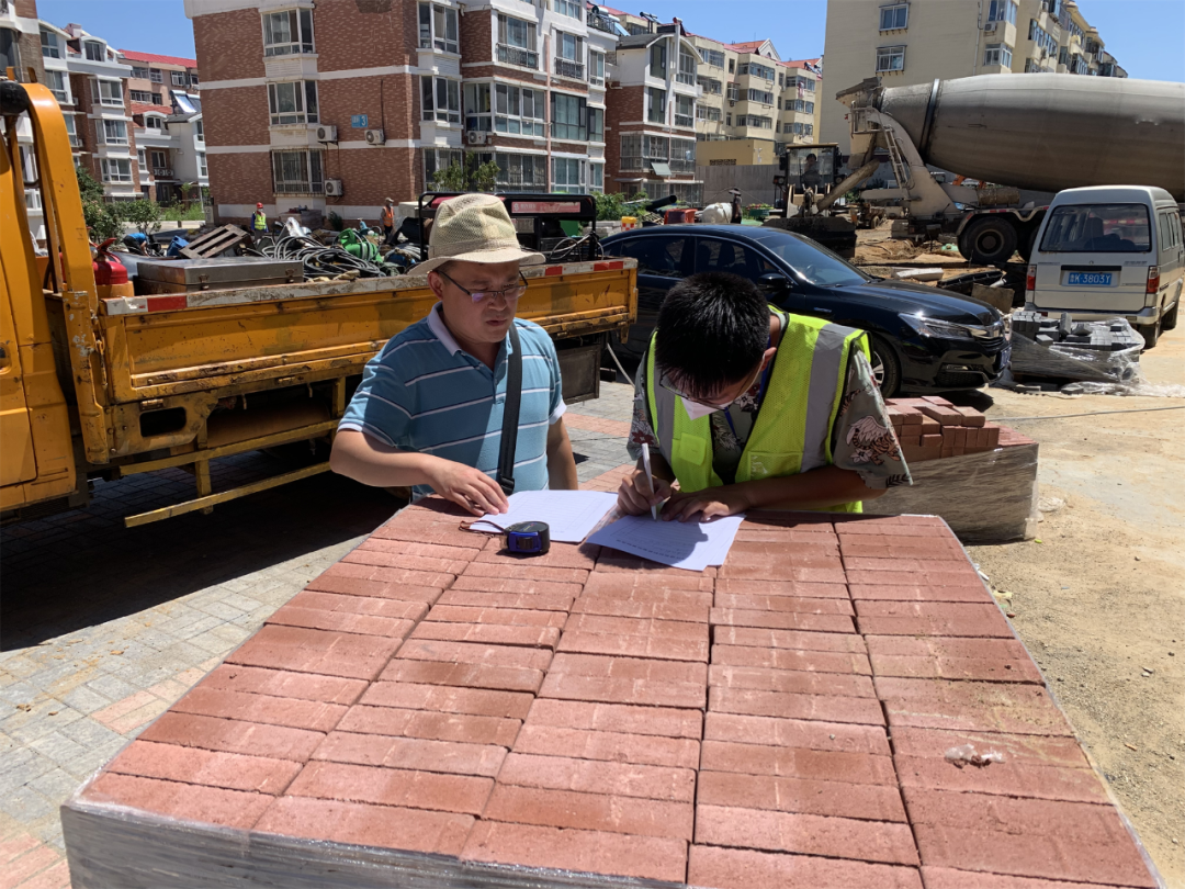 本次活动委托第三方检测机构全程参与,通过专业、科学、先进的检测方式,对混凝土厚度、垫层厚度、井圈厚度等进行抽检测量,确保符合设计要求;对现场道板砖、水泥等建筑材料进行抽样检测,严把质量关。