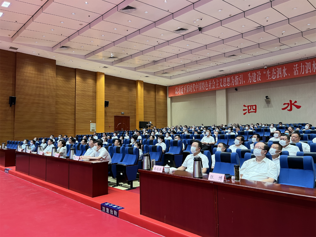 会议由泗水县委书记赵鑫主持。泗水县委常委,县人大常委会主任、副主任,县政府副县长,县政协主席、副主席,其他有关县级领导干部;各镇(街道)党(工)书记;县直各党(工)委、各部门主要负责人;泗水经济开发区、工商联、投促中心、商务局、食品中心、建材中心领导班子成员,约200人参加培训。