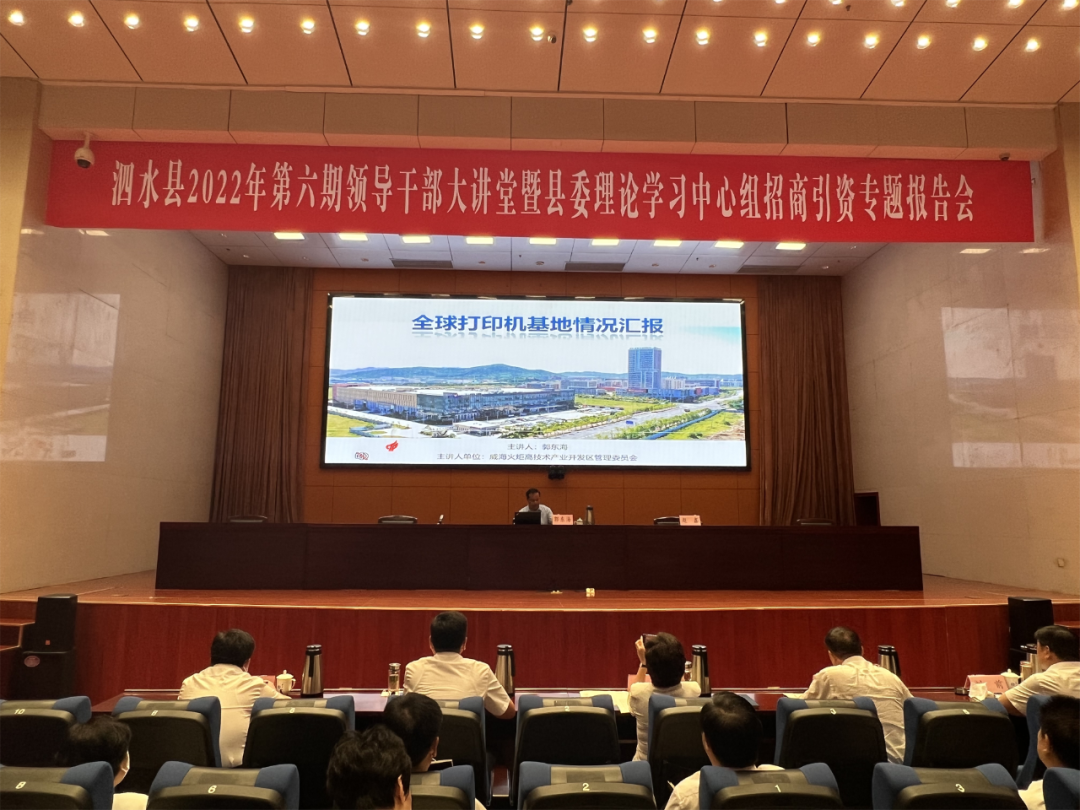 8月19日,高新区行政审批局局长郭东海代表高新区管委会赴济宁市泗水县,为泗水县2022年第六期领导干部大讲堂暨县委理论学习中心组招商引资专题报告会作招商引资实务培训。