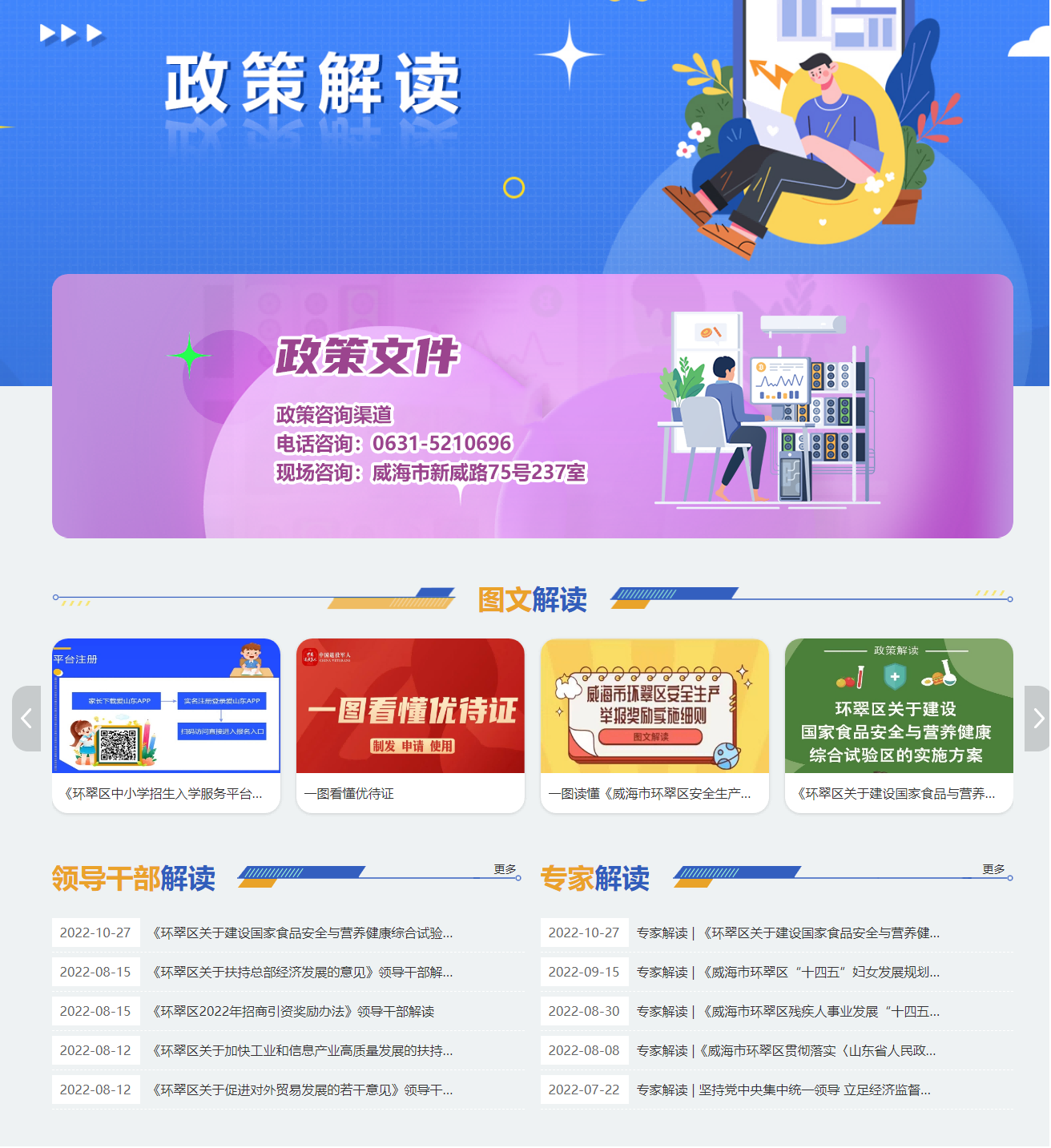 二是不断优化政策解读与咨询方式。在政务服务大厅开设政策咨询窗口,提高政务服务便民热线、实体服务大厅的政策咨询服务水平,更好解答有关生育、上学、就业、养老、医疗、纳税、疫情防控等与人民群众切身利益密切相关的问题。推动政府网站与政务新媒体的政策文件信息同库、数据同源,截至目前,全区纳入备案管理的29个政务微信均已和政府网站的政策文件、政策解读栏目实现互联互通。