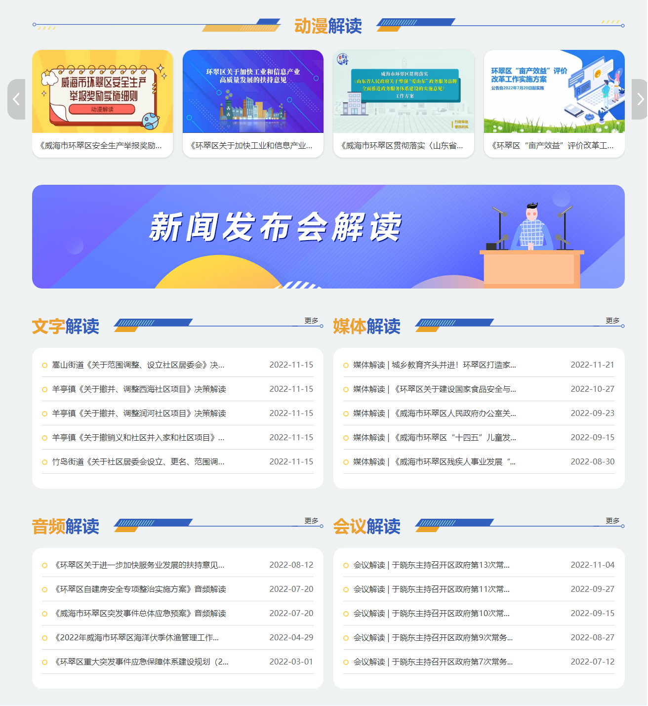 一是全面推进政策解读形式多样化。综合运用图文、音视频等数字化方式开展政策解读,制作更加贴近群众需求、公众喜闻乐见的解读产品,使政策解读可视、可读、可感。今年以来,共开展动漫视频解读17次,图文解读31次、领导干部解读14次、专家解读19次、媒体解读25次、新闻发布会解读17次。同时,对政策解读专题进行版面优化设计,实现解读材料“一揽子”公开,提高政策查询阅览的便捷度。