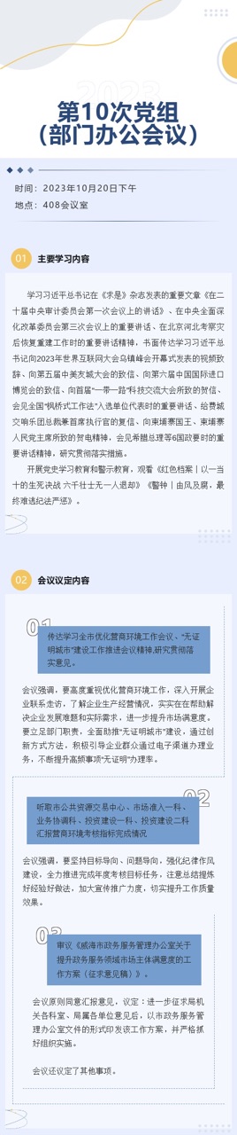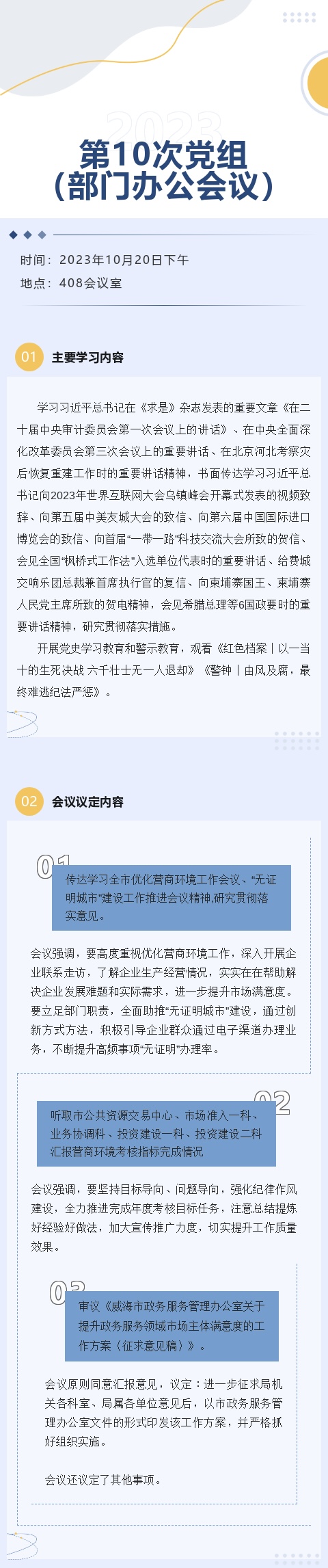 威海市行政审批服务局2023年第10次党组(部门办公)会议