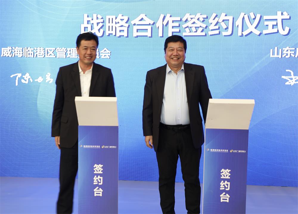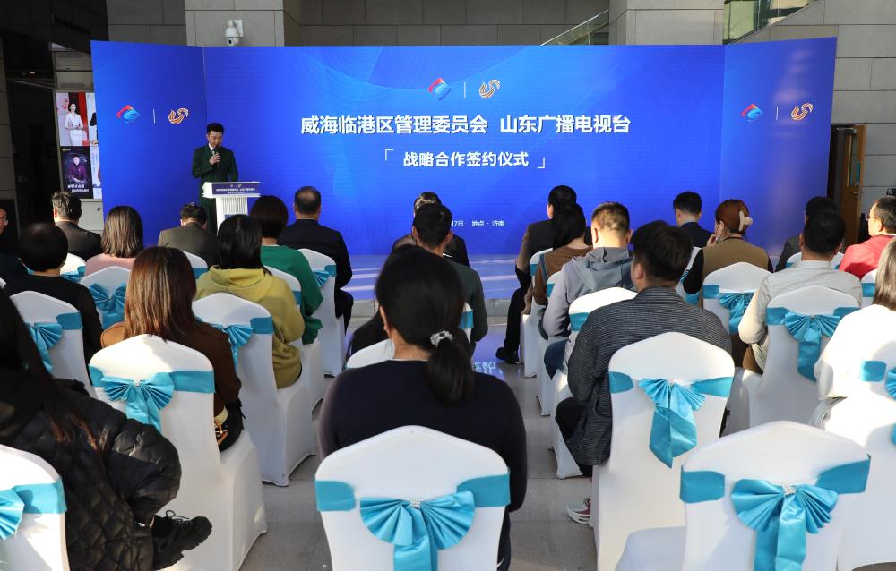 11月7日,威海临港区管理委员会与山东广播电视台战略合作签约仪式在济南举行。山东广播电视台党委书记、台长吕芃,威海临港经济技术开发区党工委书记、管委会主任宫本杲出席签约仪式并致辞。威海临港区党工委委员、党政办公室主任陈培毅,山东广播电视台党委委员、副总编辑兼电视卫星频道总监王忠分别代表双方签订战略合作协议。