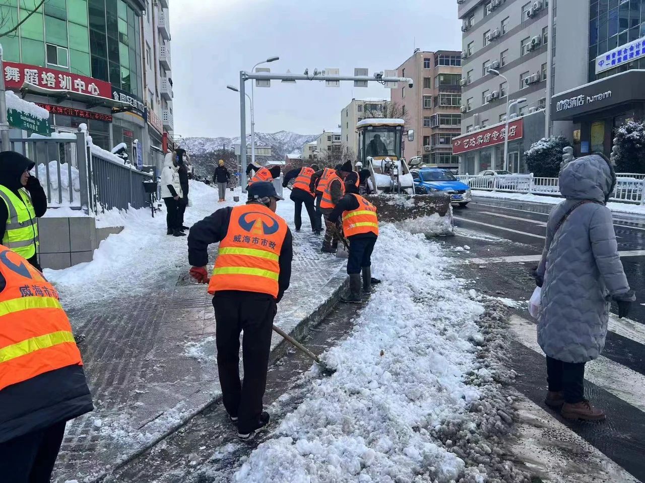 党员干部的坚守和担当,市民们看在眼里、暖在心里,大家也纷纷加入清雪队伍,自发出资出物慰问一线人员,用实际行动彰显城市“温度”。