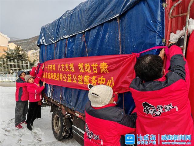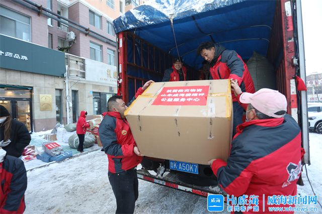威海新闻网讯 12月21日下午4时,在爱援祥公益服务中心门口,志愿者们正冒着风雪,将棉被、棉大衣等急需物资装车。据了解,这批物资将连夜送往甘肃积石山受灾地区。
