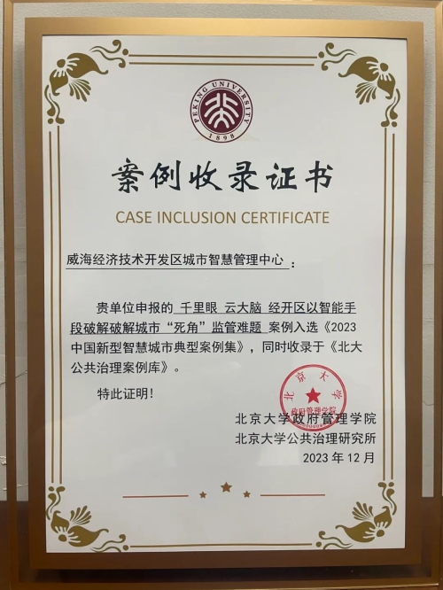 近日,经开区申报的《千里眼云大脑经开区以智能手段破解城市“死角”监管难题》案例入选《2023中国新型智慧城市典型案例集》,同时收录于《北大公共治理案例库》。