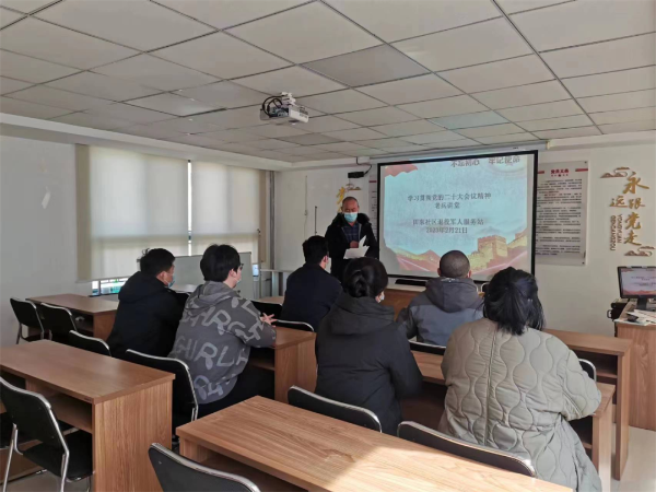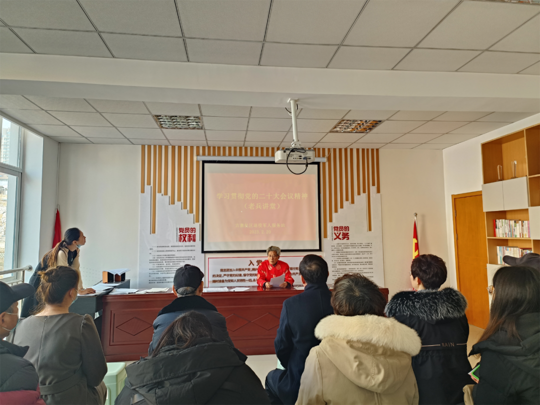 田东社区退役军人服务站“老兵讲堂”,围绕学习宣传贯彻党的二十大精神这条主线,邀请理论宣讲志愿者——退伍老兵穆建涛,为辖区退役军人及党员群众宣讲理论政策,引导广大退役军人退役不褪色、退伍不退志,珍惜机会,爱岗敬业。