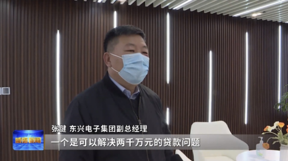 东兴电子集团副总经理张健介绍, “拨投贷保”一个是可以解决两千万元的贷款问题,无抵押、无担保、无质押。第二个就是,时间三年利率很低,所以为我们企业的融资成本,项目攻关,市场开发能够解决很大的问题。