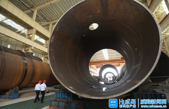在乳山豪迈重大海洋工程装备项目现场,工作人员正抢抓工期、扩产能。