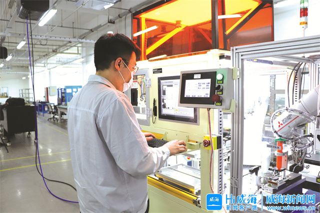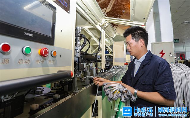 在泓淋电子生产线上,技术人员正调试设备。