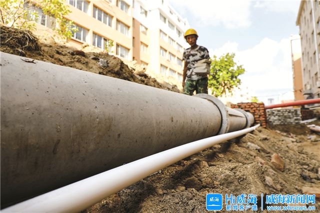 在文登区五龙新苑小区“一户一表”改造施工现场,居民楼前的地面已经挖成长长的沟槽,原本易腐蚀、易生锈的镀锌管被挖出,换成了优质结实、耐腐蚀抗老化的PP-R管。在新铺设管网的连通下,每隔一段距离,就会看到施工人员在加紧堆砌水表井池。