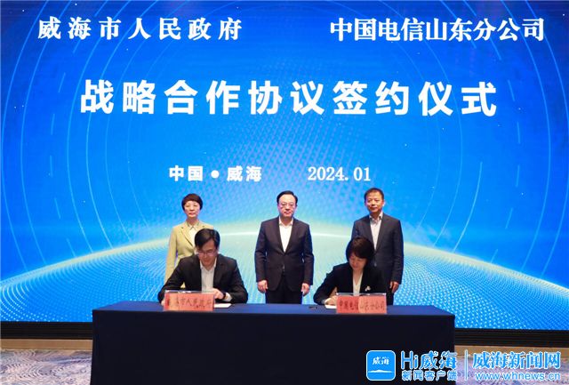 威海新闻网讯 1月17日,威海市人民政府与中国电信山东分公司战略合作协议签约仪式举行。中国电信山东分公司党委书记、总经理文勇致辞,市委书记闫剑波主持,市委副书记、市长孔凡萍介绍威海发展情况,副市长张善东出席。
